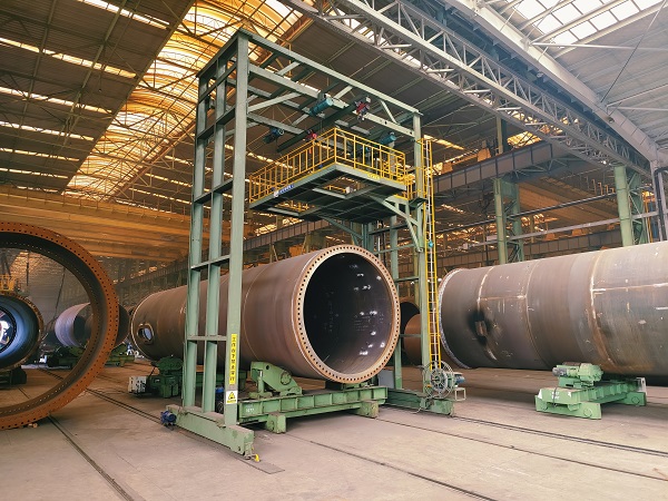 風(fēng)電塔筒懸臂焊接平臺(tái)及龍門(mén)焊是為焊接筒體外縱縫、外環(huán)縫自動(dòng)焊接的用設(shè)備,主要組成由立柱、行走機(jī)構(gòu)、提升機(jī)構(gòu)、升降平臺(tái)及控制系統(tǒng)等組成??梢酝ㄟ^(guò)立柱懸臂工作平臺(tái)架行走、滾輪架、自動(dòng)埋弧焊配合使用實(shí)現(xiàn)外縱環(huán)縫的焊接,行走穩(wěn)定,震動(dòng)小,同時(shí)可以實(shí)現(xiàn)焊機(jī)、焊工變位體。